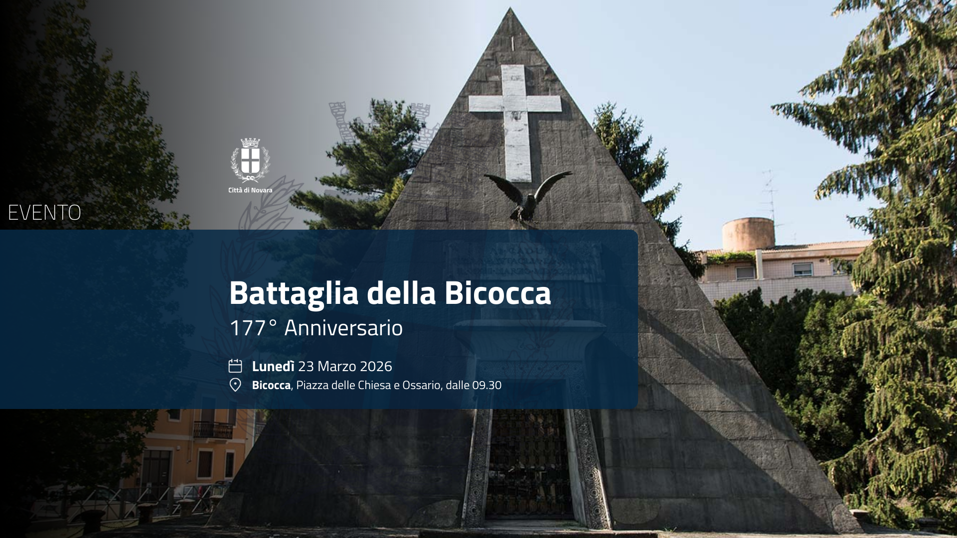 La Città di Novara ricorda il “177° Anniversario della Battaglia della Bicocca del 23 Marzo 1849” in piazza della Chiesa della Bicocca e al Sacrario-Ossario della Bicocca con la S. Messa in suffragio dei Caduti  ed a seguire una cerimonia alla presenza delle  autorità e delle rappresentanze, con la deposizione di corone di alloro.