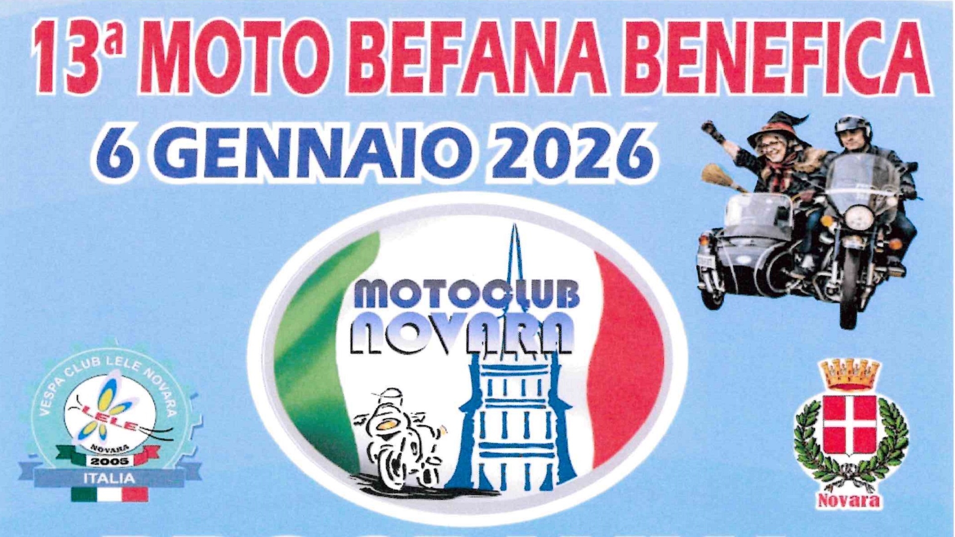 E’ la MOTOBEFANA BENEFICA 2026 organizzata dal MOTO CLUB NOVARA ASD con il patrocinio Città di Novara.