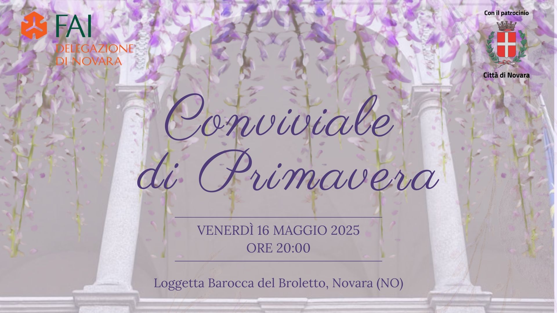 Venerdì 16 maggio 2025 nella Loggetta barocca del Broletto alle ore 20:00 si terrà la tradizionale Conviviale di Primavera organizzata dalla Delegazione FAI di Novara.