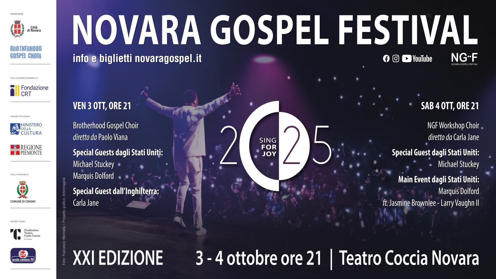 Novara Gospel Festival è un evento internazionale di musica gospel contemporanea, organizzato dall’Associazione Brotherhood Gospel Choir in collaborazione con il Comune di Novara.
