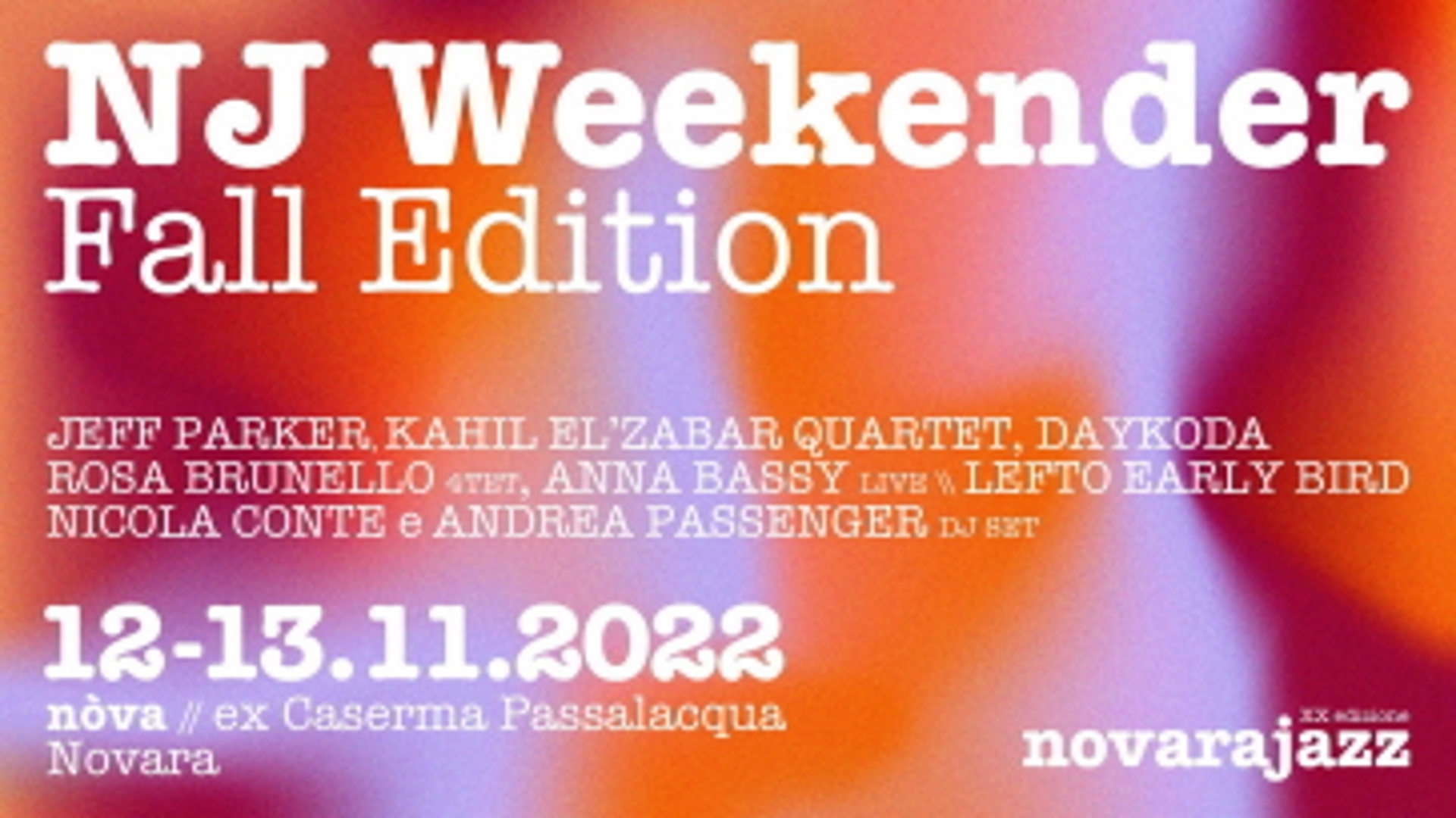 Sabato 12 e domenica 13 novembre lo Spazio Nòva (viale Francesco Ferrucci 2) ospita NJ Weekender – Fall Edition, con i live di Jeff Parker (unica data italiana), Kahil El’Zabar Quartet (data unica italiana), Daykoda, Rosa Brunello 4tet, Anna Bassy e i dj set di Lefto Early Bird, Nicola Conte e Andrea Passenger.