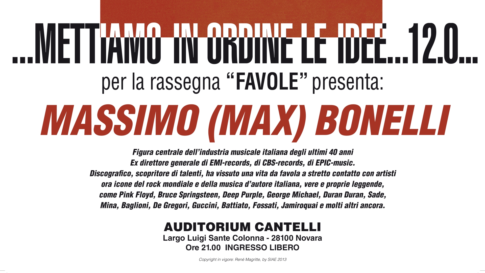 Si comincia con Max Bonelli, discografico, ricercatore musicale, con una lunghissima carriera alle spalle (EMI, Epic, CBS, Sony, di cui è stato direttore generale), icona della discografia internazionale e italiana.