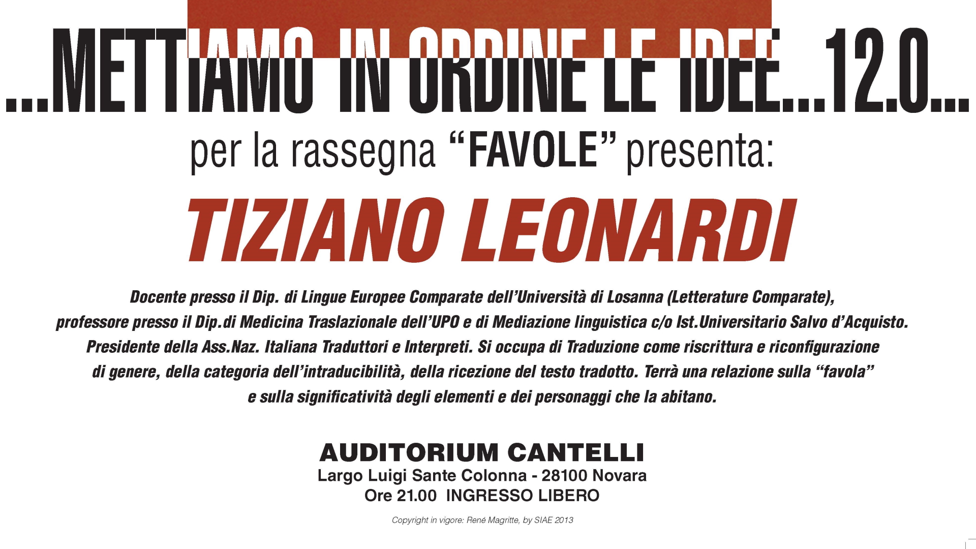 “Favole” è la parola-chiave per la dodicesima edizione di “Mettiamo in Ordine le idee”, la serie di eventi culturali organizzata dall'Ordine dei medici chirurghi e degli odontoiatri della provincia di Novara.