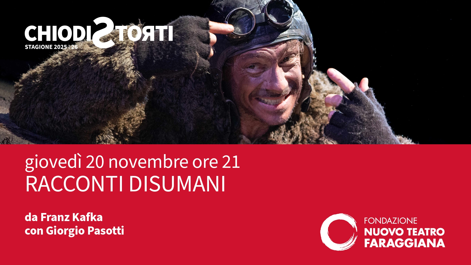 Due straordinari artisti come Alessandro Gassmann e Giorgio Pasotti si misurano con le parole di Franz Kafka, due “racconti disumani” per parlare, Pasotti interpretando e Gassmann dirigendo, agli uomini degli uomini. “Una relazione per un’Accademia” e “La tana”, sembrerebbero due storie di animali. Invece… Una relazione per un’Accademia è stato pubblicato la prima volta nel 1917, protagonista una scimmia che racconta come, in cinque anni, si adegua al sistema umano per uscire dalla gabbia nella quale l’hanno rinchiusa dopo la cattura e guadagnare un fac-simile di libertà. La narrazione in prima persona, divertita e distaccata, ripercorre lo studio delle abitudini degli uomini che con sorprendente facilità possono essere imitate e replicate. La tana racconta del continuo, disperato sforzo intrapreso dal protagonista, per metà roditore e per metà architetto, di costruirsi un’abitazione perfetta, un elaborato sistema di cunicoli costruiti nel corso di un’intera vita, per potersi proteggere da nemici invisibili. E, nel tentativo di lasciare tutto fuori, costruisce passaggi e corridoi, e nuovi tunnel che portano al niente dei vicoli ciechi, una ricerca della sicurezza ossessiva che genera solo ansia e terrore.