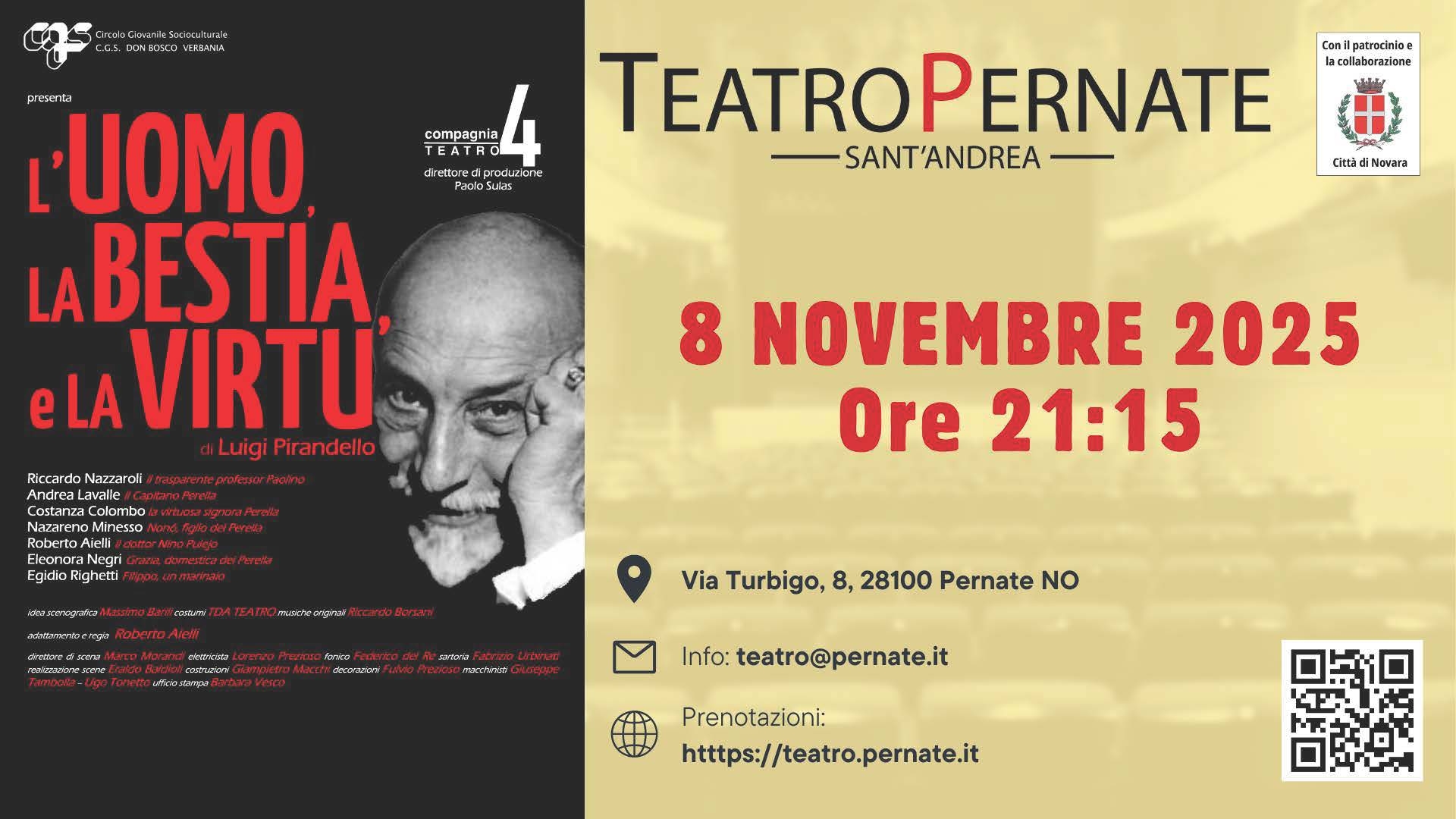 TEATRO PERNATE – L’uomo, la bestia e la virtù
