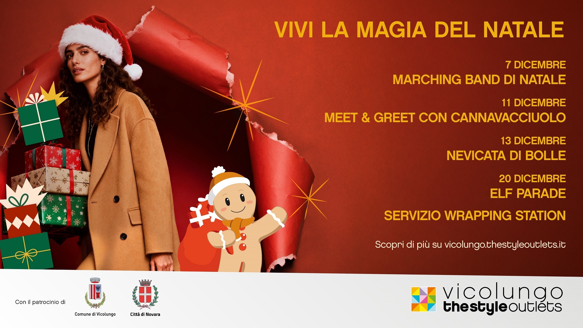 La magia del natale avvolge VICOLUNGO THE STYLE OUTLETS con un programma dedicato alla festa più magica dell’anno e rivolto alle famiglie, anche con il Patrocinio Città di Novara.